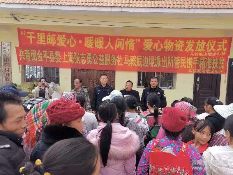 云南民族旅游網(wǎng)訊(通訊員 鄒昌義)千里之外有溫情,警民攜手傳愛心…… 2020年新年伊始,帶著上海愛心人士的深情厚誼,1月9日,一場以“千里郵愛心 暖暖人間情”為主題的愛心物資發(fā)放儀式,在紅河州金平縣馬鞍底鄉(xiāng)中梁村委會舉行,由紅河邊境管理支隊馬鞍底邊境派出所發(fā)起倡儀,上海張志勇公益服務社組織捐贈的價值10萬余元的愛心物資,正逐一發(fā)放到馬鞍底鄉(xiāng)困難群眾手中。