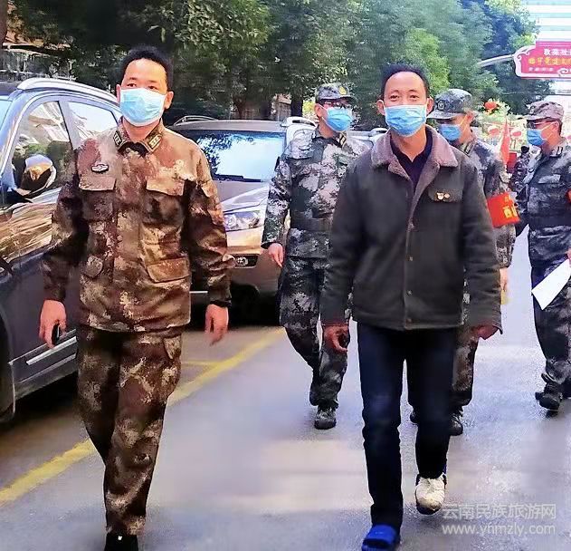 隨著新型冠狀病毒疫情蔓延的加劇,昆明進(jìn)入了全城封閉式管理模式,這對(duì)于多天奮戰(zhàn)在抗疫一線的社區(qū)干部職工來(lái)說(shuō),工作任務(wù)急劇加重,繼續(xù)入戶敲門排查、對(duì)重點(diǎn)人員進(jìn)行面對(duì)面詢問(wèn)記錄、協(xié)助物管值守小區(qū)出入口把關(guān)登記,機(jī)關(guān)下沉干部和社區(qū)干部每天都要工作到深夜。都是自己的兄弟姐妹,他看在眼里疼在心里,立即調(diào)動(dòng)轄區(qū)民兵應(yīng)急分隊(duì),支援社區(qū)應(yīng)對(duì)日益繁重的疫情防控工作,從此寂靜的街道、廣場(chǎng)、小區(qū)又多了一道亮麗的風(fēng)景-迷彩綠。