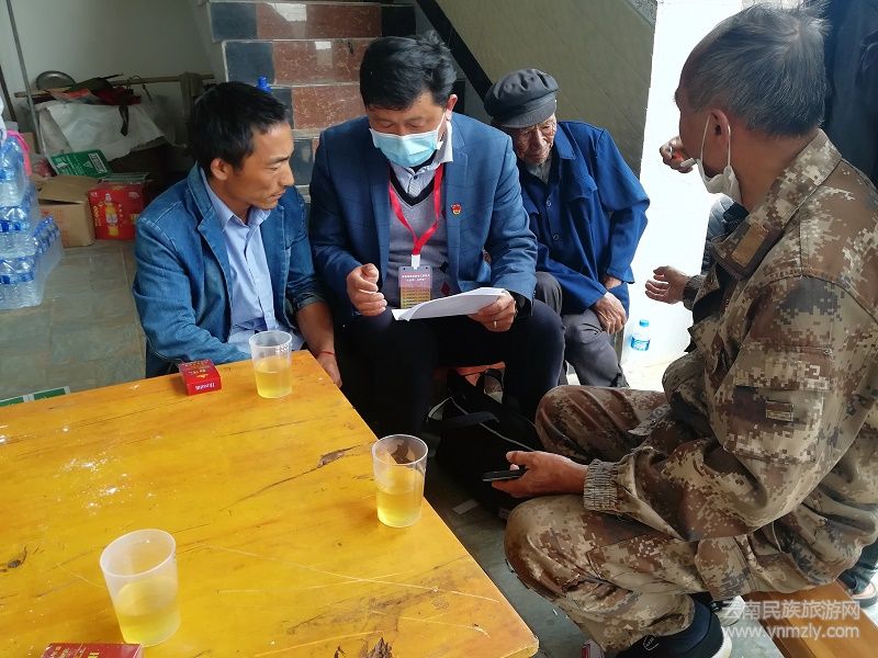 云南民族旅游網(wǎng)訊(記者 張艷全 通訊員李力)“現(xiàn)在疫情嚴(yán)重,不能出村,大家不要聚集,不要串門,做好防控措施,出門戴口罩!”這是昌寧縣小勐統(tǒng)社區(qū)第一書記、駐村工作隊(duì)隊(duì)長劉紅軍帶著口罩對村口的村民說道。