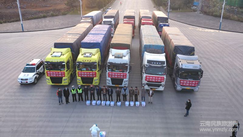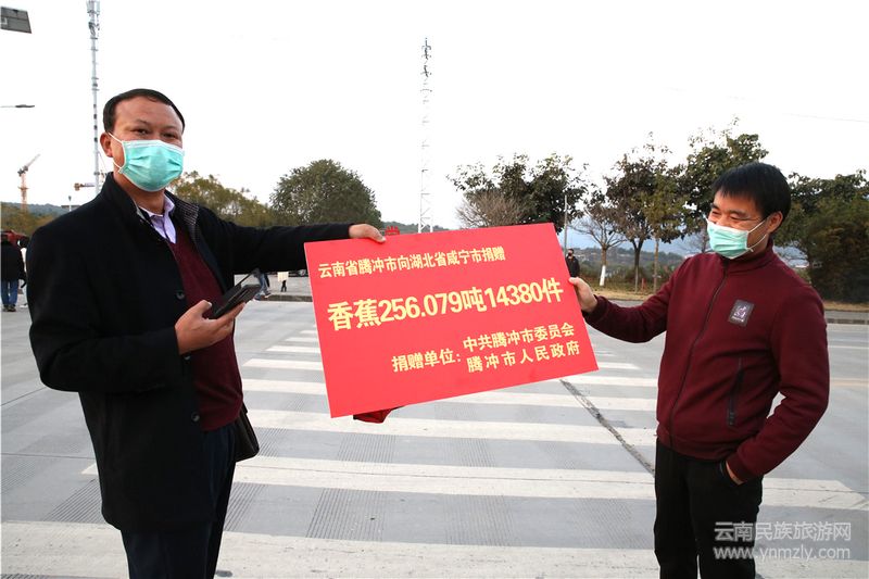 新冠肺炎疫情發(fā)生以來,騰沖市各族人民群眾始終深深牽掛著處于防疫任務(wù)最艱巨的湖北同胞,明確云南省對口支援湖北省咸寧市后,恰好與騰沖一水相隔的緬甸香蕉基地的香蕉成熟了,騰沖市決定將最甜最新鮮的香蕉送給咸寧的市民和防疫一線的人員。這批物資由騰沖市委市政府捐贈,共有香蕉256噸13480件,由十位經(jīng)驗豐富的駕駛員和來自商務(wù)局、交警大隊、融媒體中心的保障人員組成運(yùn)輸車隊。