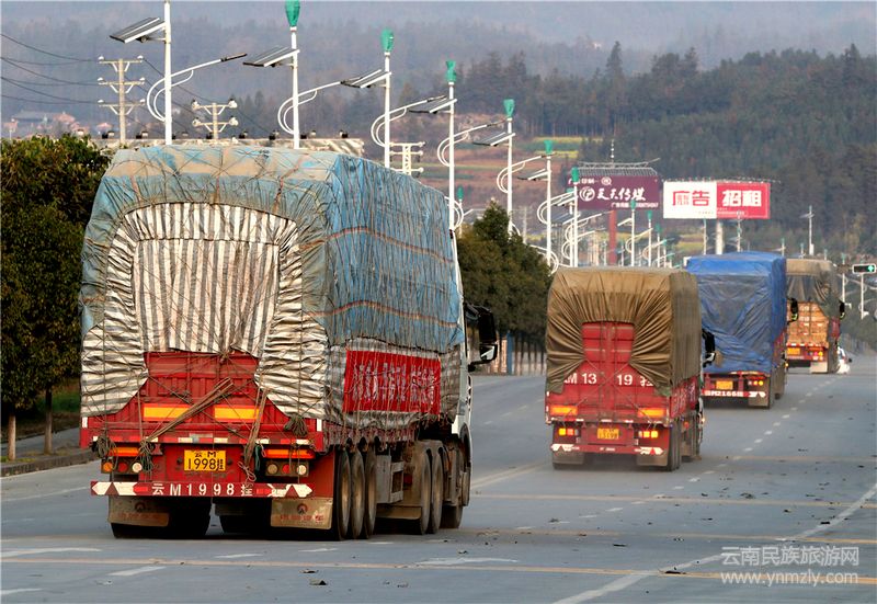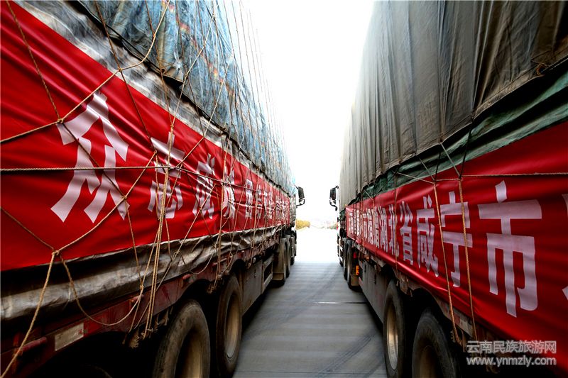 云南民族旅游網(wǎng)訊:2月22日8點(diǎn)30分,滿載騰沖馳援湖北256噸香蕉的十輛大卡車從騰沖準(zhǔn)時發(fā)車,車隊將馳往2000多公里外的湖北咸寧。