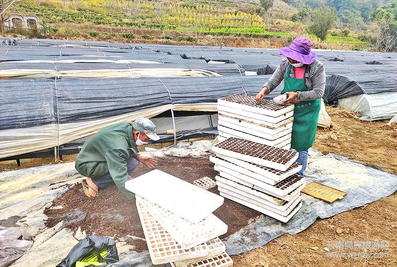 在翁堵集鎮(zhèn)旁的煙苗點(diǎn)里,戴著口罩的工人們分工合作、分散做工,裝盤、壓穴、播種、擺盤,每個(gè)環(huán)節(jié)都有條不紊,為全年烤煙工作打好基礎(chǔ)。翁堵鎮(zhèn)烤煙合作社理事長郭浩明一邊忙著指導(dǎo)一邊說:“我們特別注意防護(hù),嚴(yán)格執(zhí)行消毒化、班組化、流程化、區(qū)域化作業(yè)管理。工人們來的第一件事就是測量體溫、消毒。干活的時(shí)候戴口罩、不扎堆,分塊完成自己的任務(wù)。”
