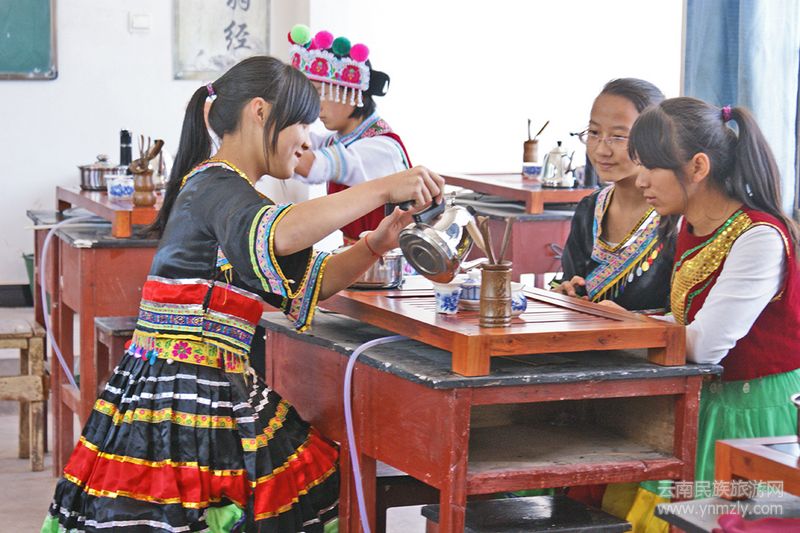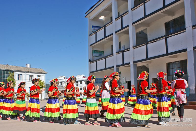 成立專門(mén)的教師文體活動(dòng)編排小組,對(duì)非物質(zhì)文化傳承項(xiàng)目進(jìn)行創(chuàng)新編排,形成了獨(dú)具特色的學(xué)校課間操、課外文體活動(dòng)、興趣活動(dòng)等。聚焦民族傳統(tǒng)文化的挖掘和傳承,將活動(dòng)從課堂延伸到課外,組織的“民族故事會(huì)——讓孩子們講起來(lái);民族民俗知識(shí)競(jìng)賽——讓孩子們學(xué)起來(lái);民族打歌活動(dòng)——讓孩子們跳起來(lái);民族服飾設(shè)計(jì)制作——讓孩子們動(dòng)起來(lái);民族語(yǔ)言學(xué)習(xí)——讓孩子們說(shuō)起來(lái);民族音樂(lè)傳承——讓孩子們唱起來(lái)”等活動(dòng),在促進(jìn)少數(shù)民族學(xué)生自信、自強(qiáng)的同時(shí),民族文化傳承成為學(xué)校的一大辦學(xué)特色。
