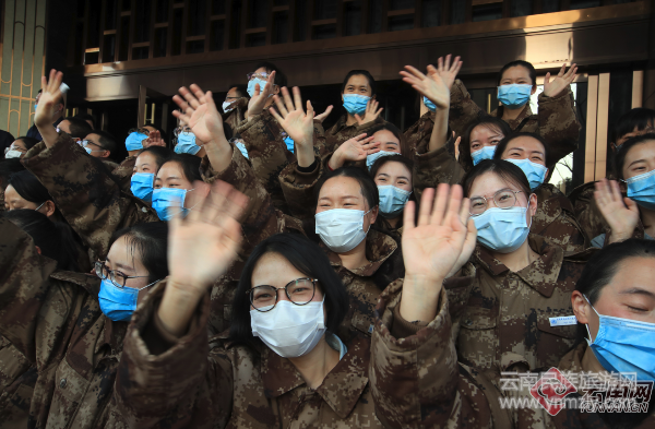 3月17日,云南省第四批支援湖北省醫(yī)療隊在合影時,向曾經(jīng)奮戰(zhàn)過的“主戰(zhàn)場”揮手告別。