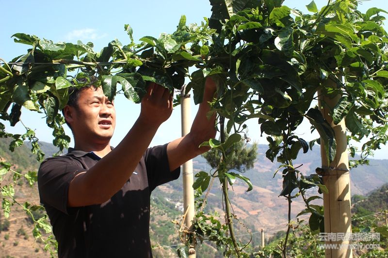 云南民族旅游網(wǎng)訊:走進(jìn)龍陵縣臘勐鎮(zhèn)新和村蘇家玉的西番蓮(洋石榴、百香果)種植園,一排排盞架上爬滿了碧綠的西番蓮,蘇家玉正在果架上理藤蔓。“有了果香就有了希望,去年雖然6畝西蕃蓮才賣了2萬多塊錢,但初步摸索出冷涼山區(qū)種植西蕃蓮的經(jīng)驗(yàn),期望今年有個(gè)好收成。”蘇家玉說。