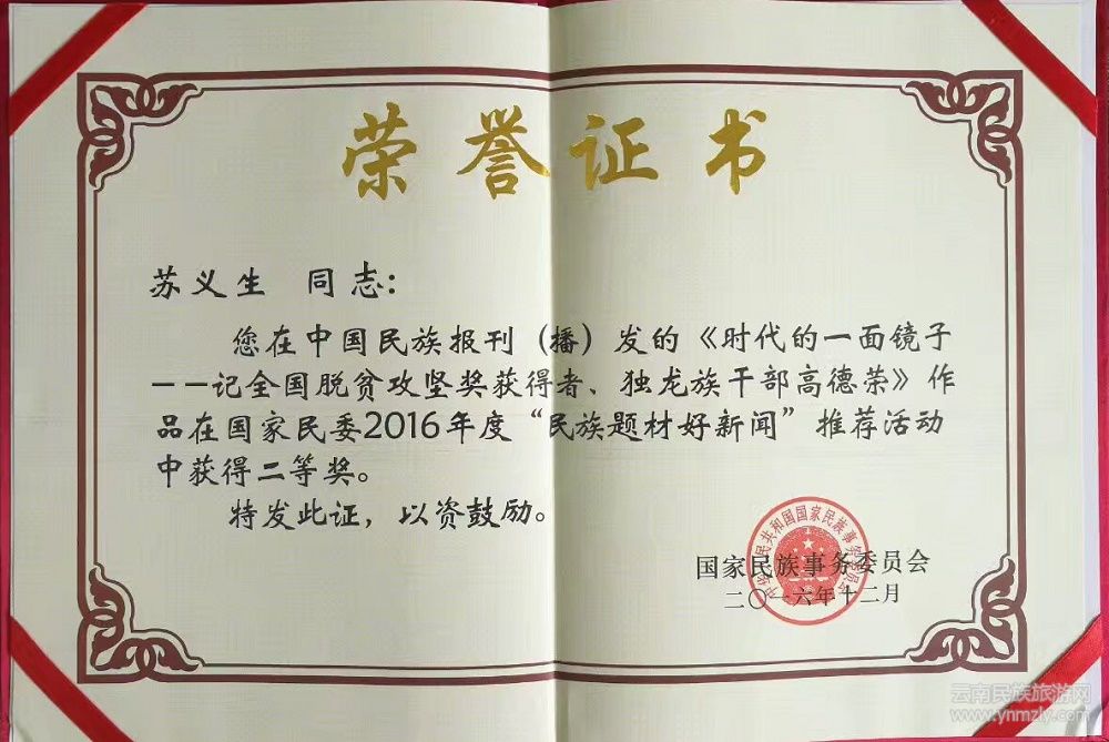 以文扶貧,他一直躬身踐行。他撰寫的《時代的一面鏡子——記全國脫貧攻堅貢獻獎獲得者、獨龍族干部高德榮》長篇通訊,榮獲國家民委“2016年度民族題材好新聞二等獎”;撰寫的《怎一個“情”字了得——高德榮的情和夢》一書,被國家新聞出版廣電總局列入《2017年農(nóng)家書屋重點出版物推薦名錄》;他參與撰寫的《獨龍?zhí)炻贰反笮驮瓌?chuàng)話劇,被文化部評為2018年國家舞臺藝術(shù)精品劇目;編輯出版《人民的一面旗幟——高德榮精神研討文集》一書,2019年10月,該書被國家圖書館收藏,并參與“致敬國家勛章和國家榮譽稱號獲得者”系列活動展出。