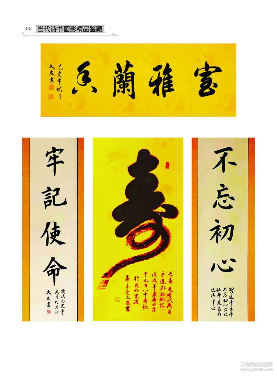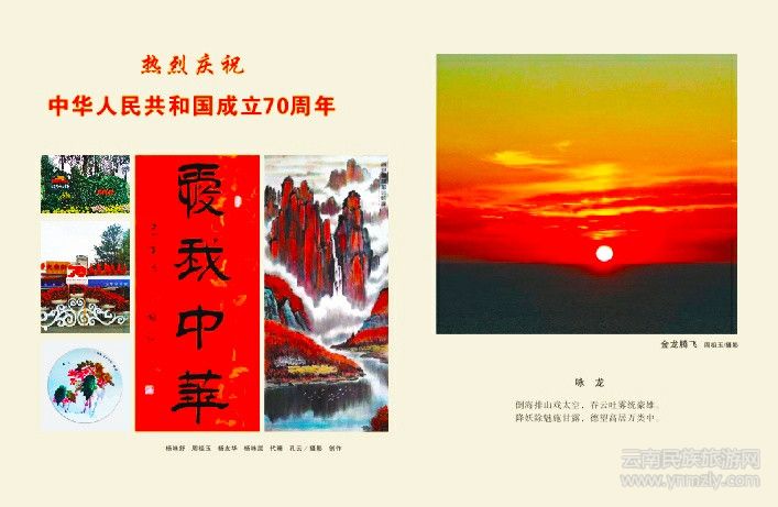 此畫冊(cè)系為慶祝新中國(guó)成立70周年而特別推出,該書收錄了中書協(xié)教授兼中楷藝研院副院長(zhǎng)孫文佳、中國(guó)高級(jí)美術(shù)工作者高丹鳳、作家書法家攝影家周祖玉等37位作者的詩(shī)書畫和攝影作品1000多幅(首),絕大多數(shù)都屬上乘之作。如錢根余的行書《天耀中華》、楊詠昆的隸書《愛我中華》、代晴的國(guó)畫《綠水青山》、徐忠禮的工筆畫《錦上添花》周祖玉的影配詩(shī)《金龍騰飛》等一大批作品深受藏家和消費(fèi)者喜愛。