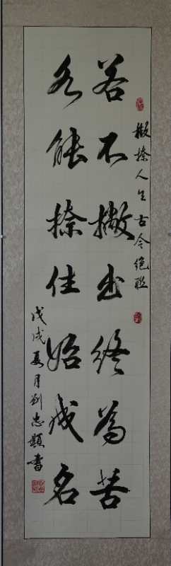 由于長期在國企石油勘探行業(yè),工作繁忙,流動性大。于2008年退休后,故很少參加社會活動。2017年至2019年,一直從事書法培訓(xùn)教學(xué),含青少年硬、軟筆,老年大學(xué)毛筆書法(楷書、行書)等。