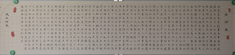 劉忠顯先生楷書結(jié)合《九成宮碑》及當代田英章老師筆法、結(jié)構(gòu),又適當融入柳、趙及碑、隸特點,崇尚嚴謹、規(guī)范、流暢的書風(fēng);行草在文革期間曾臨摹毛體,頗受其影響;小楷臨摹文征明《琴賦》,頗有心得。