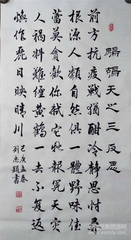 劉忠顯先生受家父影響,自幼酷愛書法,高中時期鋼筆字已譽滿全校;毛筆師從語文老師學(xué)柳體,后主攻歐楷,兼學(xué)顏、趙;書體以楷書為主,行草、隸書、碑體也有修練;現(xiàn)為“中國石油書法家協(xié)會”、“云南省硬筆書法協(xié)會”、“云南省老干部書畫協(xié)會”會員;“云南石油書畫攝影分會”副會長。