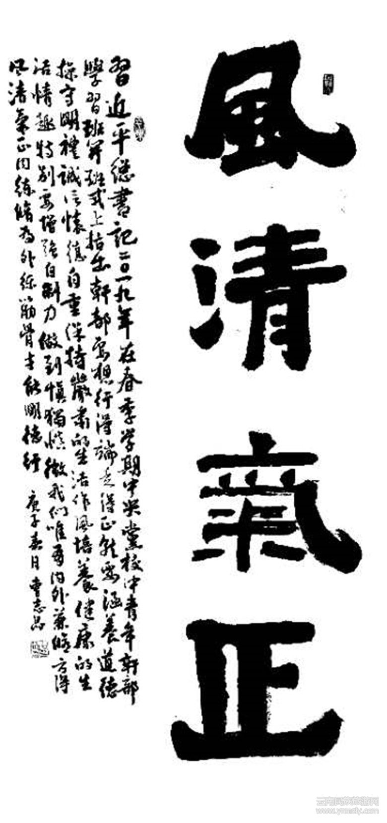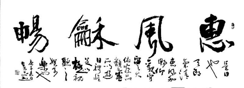 其書法以帖學(xué)為宗,繼承“二王”,傳承經(jīng)典,不斷從王羲之、王獻之及趙孟頫、褚遂良、王鐸、董其昌等書學(xué)中汲取營養(yǎng),形成端正儒雅、清秀飄逸的風(fēng)格特點??瑫醋酝鯇?,兼收褚遂良的技巧特點,用筆端穩(wěn)嫻熟,扎實而靈動,筆法富有生氣、力量和陽剛精神,雄渾豪放,神工化一。