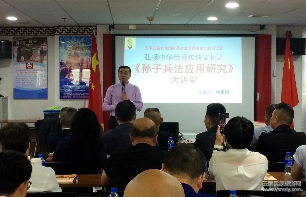 云南民族旅游網(wǎng)訊(記者 吳敏昆)5月30日下午,“孫子智慧與新時代民營企業(yè)生存發(fā)展啟示”為主題的,弘揚中華優(yōu)秀傳統(tǒng)文化之《孫子兵法應(yīng)用研究》大講堂在云南省孕嬰童用品協(xié)會會議室開講,本次大講堂由姚祖國倡議發(fā)起并主講,云南三益文化國防基金會指導(dǎo),云南省民族商會、云南省廣東商會、云南省民間投融資行業(yè)協(xié)會、云南嘉樂控股集團有限公司、昆明騰輝汽車維修服務(wù)有限公司、云南沐纖美健康管理有限公司和深圳傳奇生物科技有限公司聯(lián)合主辦,現(xiàn)場近百位來自各行各業(yè)的企業(yè)家以及熱愛中華優(yōu)秀傳統(tǒng)文化人士參加。