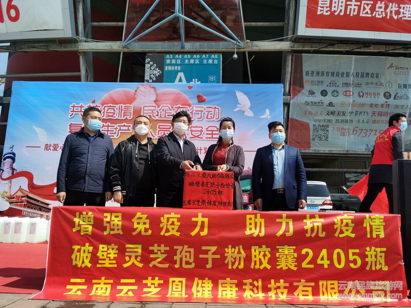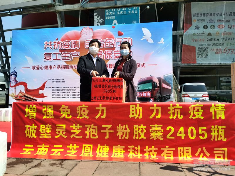 2019年底,突如其來的新冠肺炎疫情席卷神州大地,全國各族人民在黨中央英明領導下用自己的行動奮力投入抗疫阻擊戰(zhàn)。社會各界除做好自身疫情防控外,紛紛向“疫”線愛心捐款、捐各類物資。公司董事長、法定代表人王怡璇女士帶領公司員工親臨云南省委省政府應對疫情工作領導小組指揮部組織的共抗疫情 民企在行動 云南省民營企業(yè)家協(xié)會捐贈儀式現(xiàn)場向疫區(qū)獻愛心,捐贈公司研發(fā)生產(chǎn)的“破壁靈芝孢子粉膠囊”,助力抗疫情。