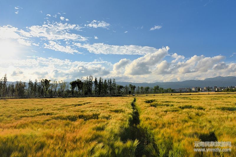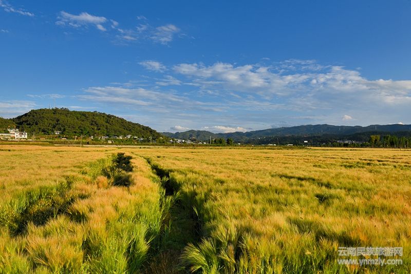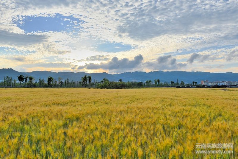 站在小城所在的右甸壩邊任何一個(gè)角落眺望,城鎮(zhèn)村莊被淹沒(méi)于金黃色中。行走在阡陌有序的田園之間,初熟的麥子泛著陣陣清香,隨微風(fēng)沁入心脾,讓人一陣心曠神怡,也讓濃濃的鄉(xiāng)愁在心海蕩漾起陣陣?yán)嘶ā?/p>