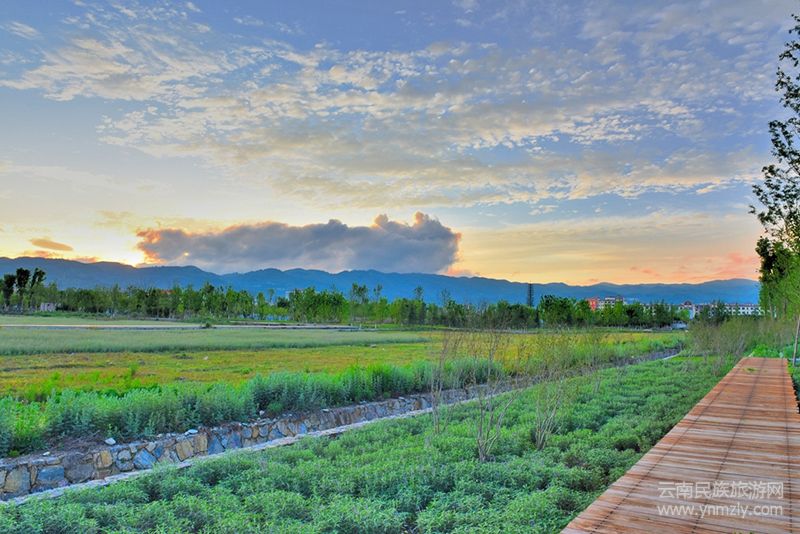 除右甸河外,星河田野農(nóng)田公園里也有一條“玉帶”。這里在保留大片田野的基礎(chǔ)上,增加了許多新的設(shè)施和景觀,最吸引人的是綿亙于田野中的那條“運(yùn)河”,早晚滿河霞影,白天白云藍(lán)天,夜晚星光點(diǎn)點(diǎn),雖尚未有小船游弋,卻已讓人留連不已。