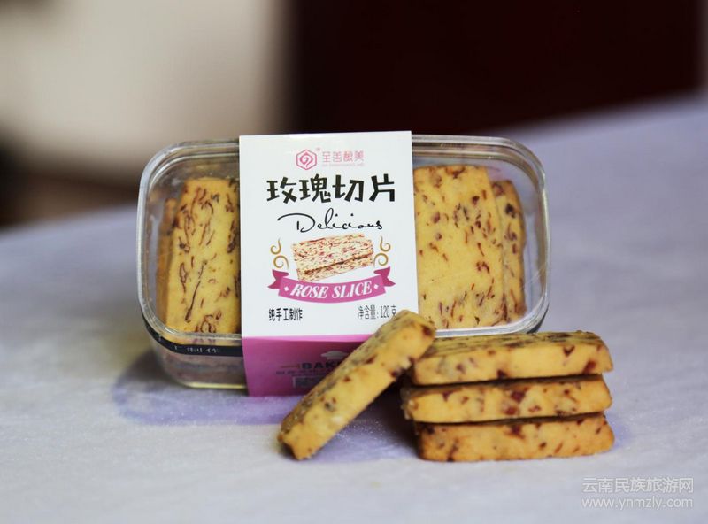 4、玫瑰切片/曲奇餅干:優(yōu)選云南高原富硒有機重瓣紅玫瑰鮮花瓣、優(yōu)質進口發(fā)酵奶油精心制作,其芳香濃郁,酥脆營養(yǎng),給您帶來一份源自高原玫瑰谷的清甜問候。