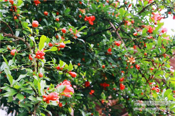 門前無邊青麥,墻頭石榴花開。一株不起眼的石榴樹、一朵不起眼的石榴花,卻紅遍了整個初夏,且不說秋日里那碩大飽滿的紅石榴讓人垂涎欲滴,今日那火一般的中國紅照樣令人沉醉。