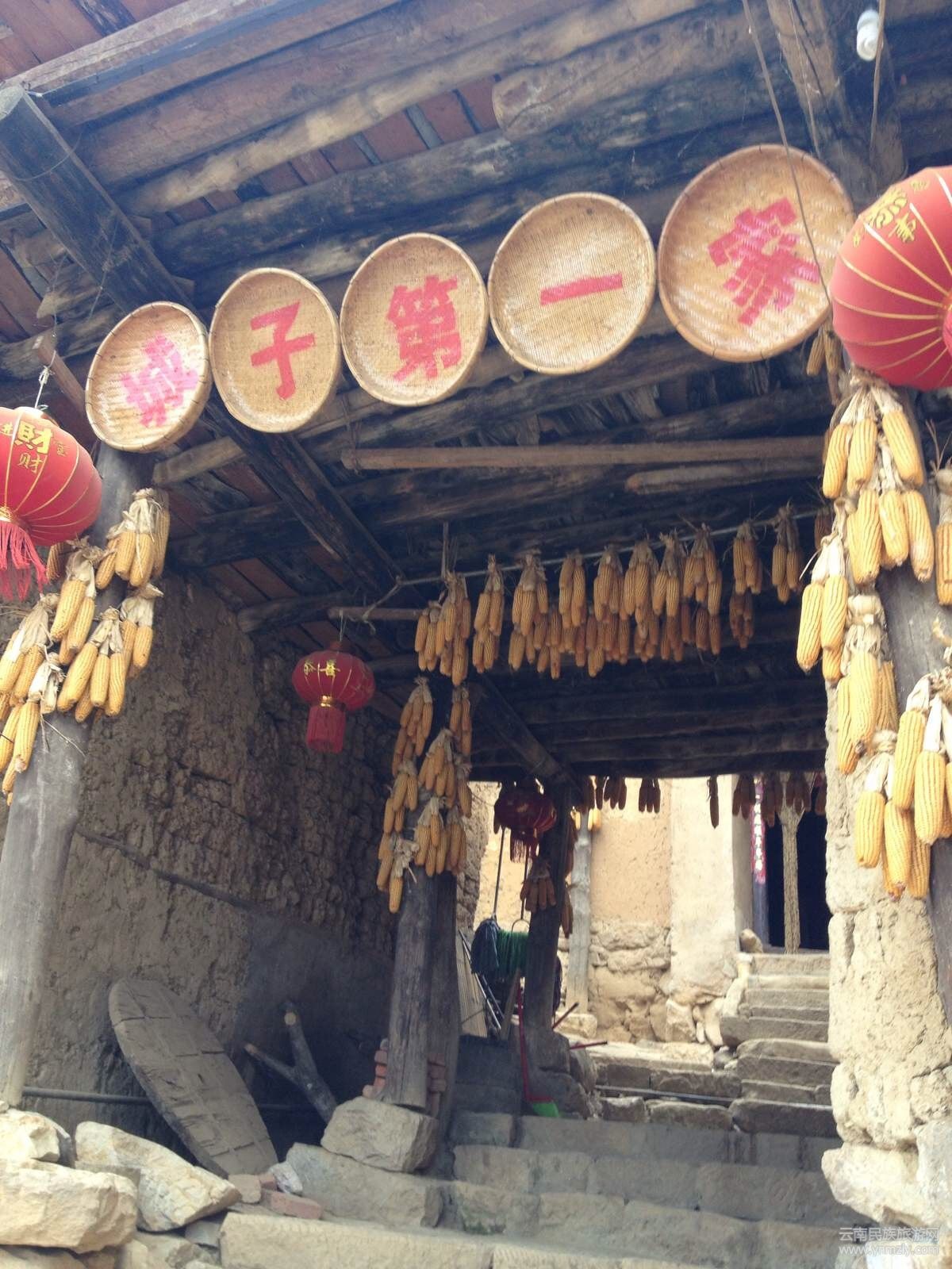 外來的游客,可以隨意走進村子里的任何一戶人家。每家都會有個小院,屋檐下、墻壁上掛滿了包谷;院子里曬著衣物,充滿著濃濃的農(nóng)家氣息,洋溢著豐收的喜悅。
