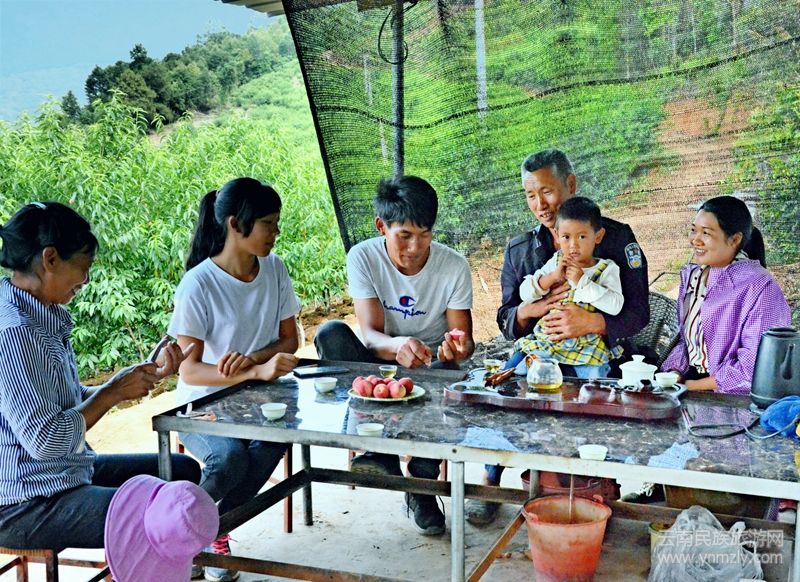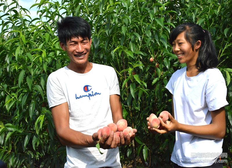 漭正旺的桃園位于耈街鄉(xiāng)新廠村上平村民小組瀾滄江東岸,距離因小灣電站下閘蓄水形成的高峽平湖僅有四百多米。桃子成熟季節(jié),江邊桃園郁郁蔥蔥,樹上紅桃鮮美可愛。鮮甜的桃子、美麗的風(fēng)景,各地游客慕名前來休閑旅游、體驗采摘的快樂。