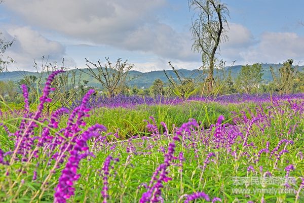 夏天走在昌寧的山水田園大公園,隨處可見藍色的花兒,讓燥熱的空氣獲得一絲清涼。馬鞭草、紫絨鼠尾草、藍色鼠尾草、紫嬌花、百子蓮……一種種藍色、紫色的花,織出藍紫色地毯,把夏日的酷熱融化于其間。