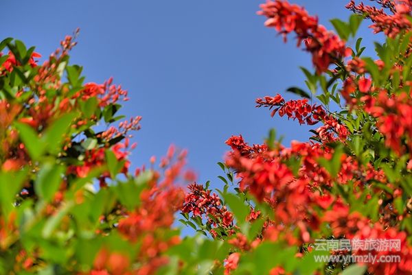 一紅一藍,同樣綻放于火熱的夏日,名字里有相同的“楹”字的兩種花,在昌寧演繹著冰與火的傳奇。象征著火熱激情的鳳凰花卻開在如火的熱區(qū),代表著冷峻、憂郁的藍開在了較涼爽的地區(qū),讓涼者更涼、熱者更熱。