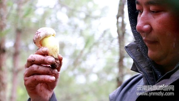 要想烹飪出來的野生菌味道鮮美,所選食材必須是當(dāng)天剛剛采到的野生菌。一大早,村民蔣開洪便來到山林里采野生菌。