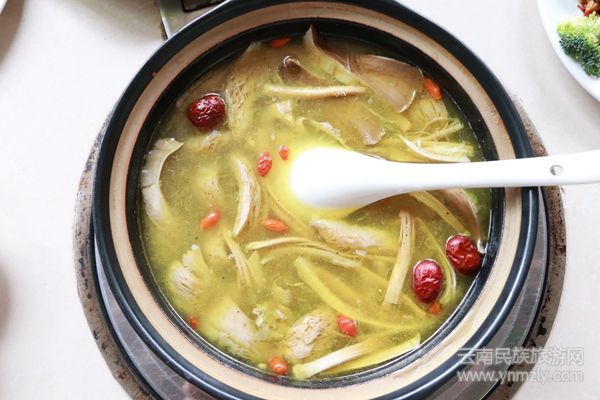說到鮮香,一道美味的雞樅煮雞必不可少。將雞樅洗凈后用手撕開備用,將備好的土雞放入鍋中加入姜蒜片煮至爛熟后放入雞樅繼續(xù)煮上十分鐘,這時(shí)就能在空氣中聞到雞樅的鮮香,那是一種下雨天漫步在樹林里的感覺,讓人流連忘返。