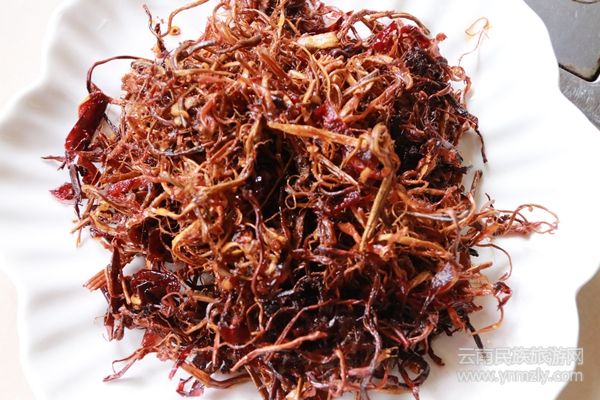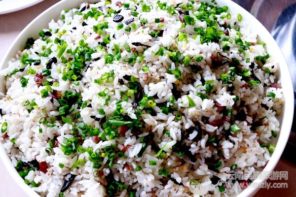 姚關(guān)火腿干巴菌炒飯,這是一道既能單獨(dú)吃,又能與其它菌子一起吃的美食,火腿的香味與干巴菌的芬芳充分混合后放入米飯。一道香氣撲鼻的姚關(guān)火腿干巴菌炒飯就完美上桌了。