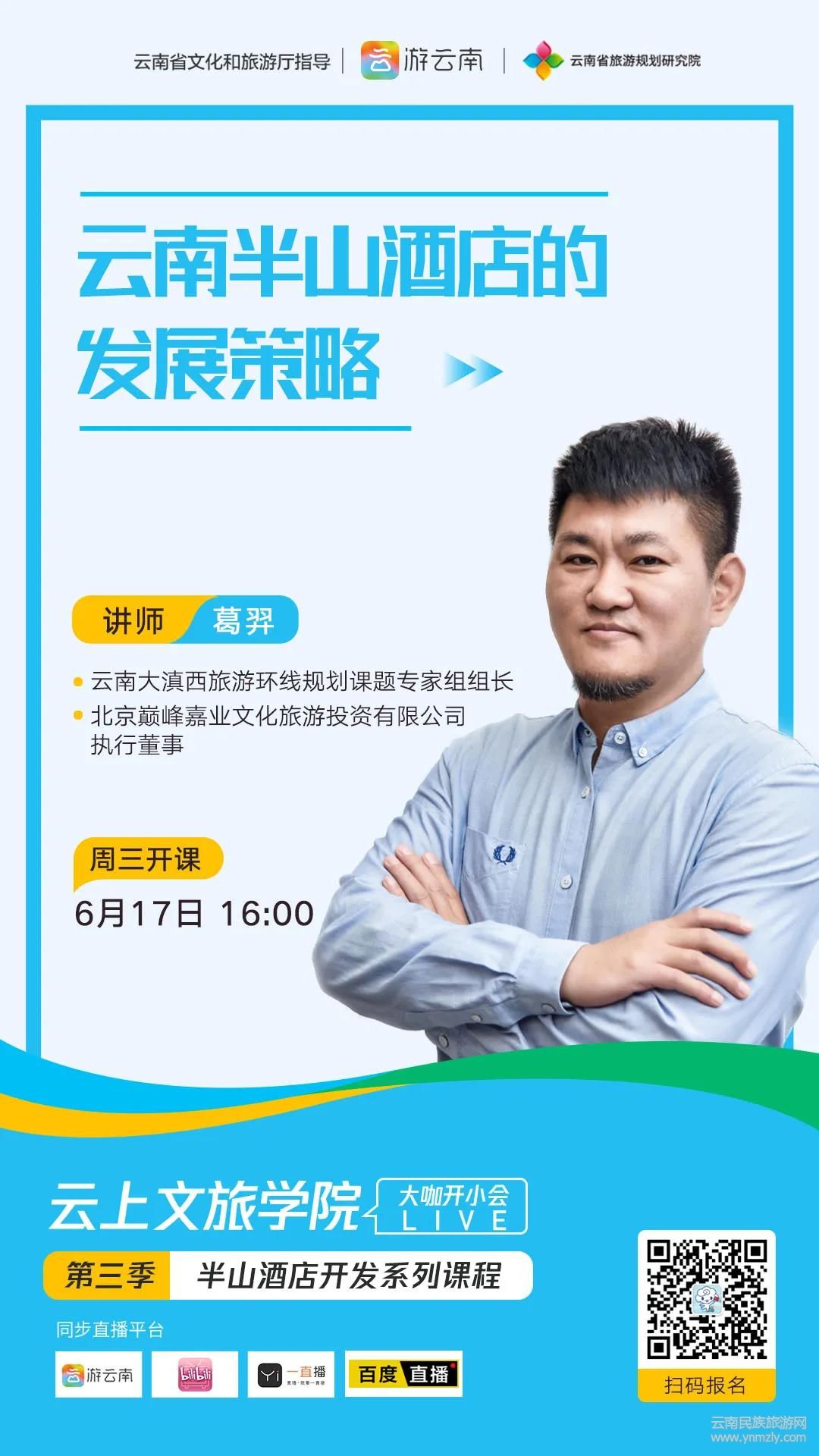 由“游云南”聯(lián)動云南省旅游規(guī)劃研究院策劃并推出的新一季課程,以“半山酒店”為主題進行授課、分享,意在為半山酒店建設以及疫后酒店業(yè)突破困境答疑解惑、提供建議。