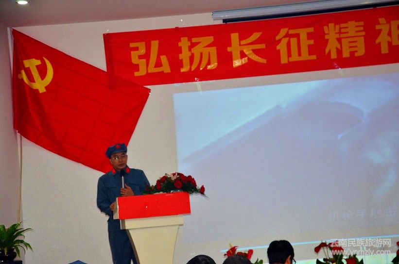 活動主題為“弘揚長征精神 建功立業(yè)新時代”,特意邀請了紅色文化和長征精神的主講老師姚祖國上臺作主旨演講。
