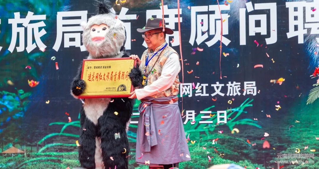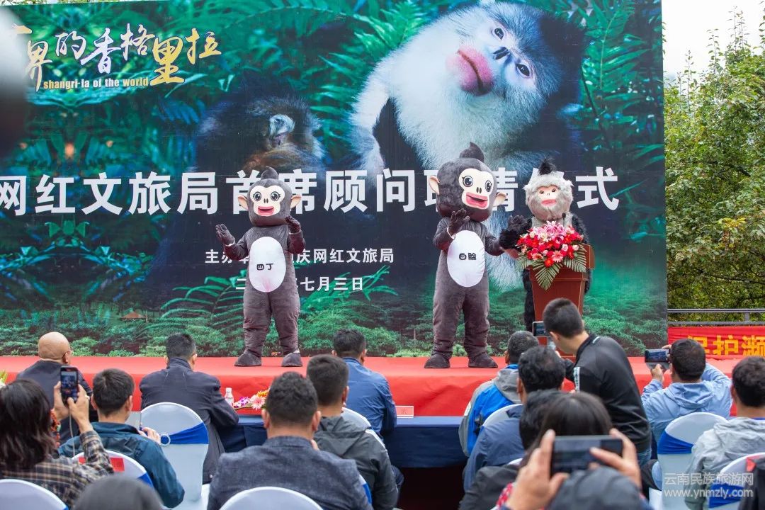 7月3日,在由迪慶州文化和旅游局、迪慶州旅游集團(tuán)主辦的“世界的香格里拉”網(wǎng)紅文旅局首席顧問聘請(qǐng)儀式上,可愛的滇金絲猴多了一個(gè)新身份——“網(wǎng)紅文旅局”首席顧問。