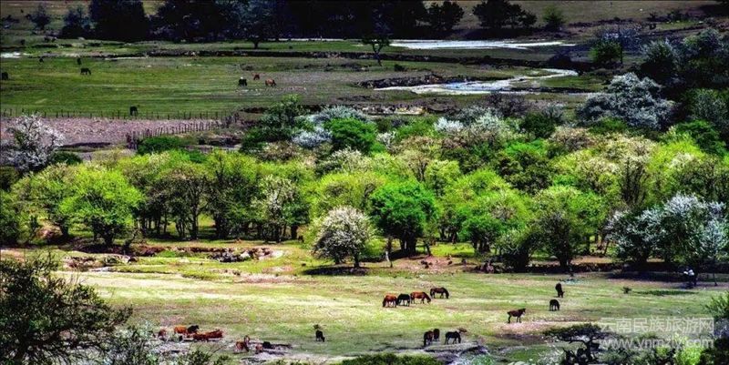 伊甸園氣候溫潤,有許多結(jié)滿果子的果樹,奇花異草,一片自然花園,而且沒有攫食其他動物的猛獸,芬芳四溢的野地和草坪上,羊群啃著嫩草,伊甸園是一個(gè)四季如春,氣候溫潤,花果繁盛,溪河橫溢的樂園,草甸、樹木、河流、動物……與黃草壩詩密娃底的景致一模一樣!