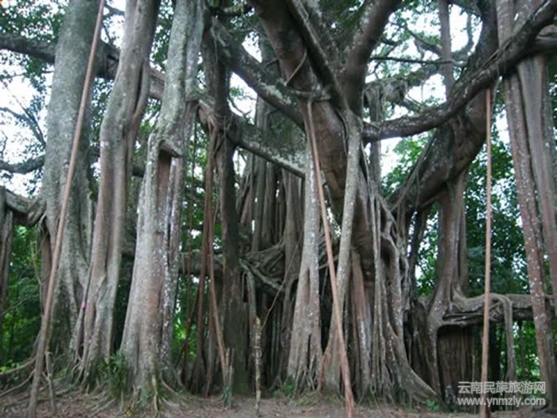 盈江榕樹王是世界最大的榕樹,該樹高約40米,由下垂的氣生根長成的新樹干已達(dá)100多根,每年仍有10多條氣生根在增加,樹冠覆面積達(dá)5.5畝,遠(yuǎn)遠(yuǎn)看去,猶如一片小樹林,榕樹由多條氣根提供水份和養(yǎng)料,又稱“不死樹”,一樹生百樹,可謂“生命樹”的無敵代表!此樹顯現(xiàn)十幾對男女交配姿勢,生命交合,神奇之極!