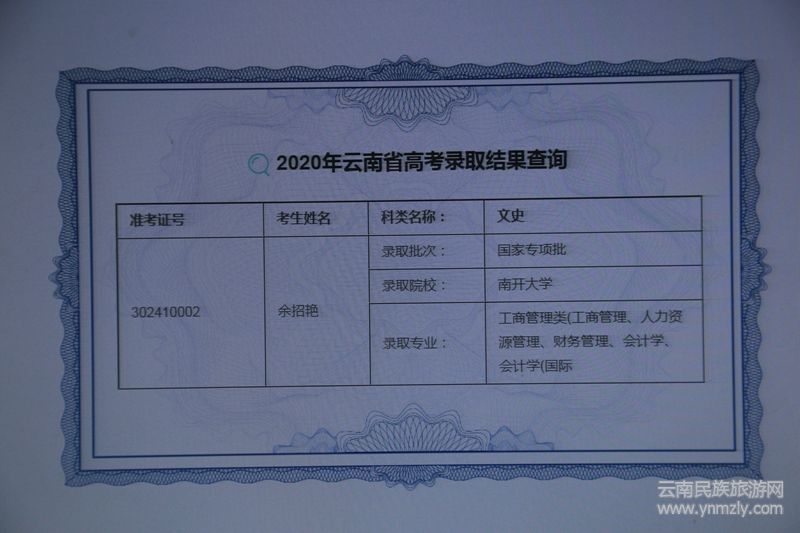 烏木寨小學(xué)沒有學(xué)前班,為了不讓孩子輸在起跑線上,飽嘗沒有文化苦水的余翠香,想盡辦法把孩子送到了30多里的鄉(xiāng)中心小學(xué)進行學(xué)習(xí),乖巧懂事的余招艷深知父母不易,像一根擰緊了的發(fā)條刻苦學(xué)習(xí)。“苦心人,天不負(fù)。”在歷經(jīng)十二年的寒窗苦讀后,南開大學(xué)的錄取通知書,讓一切付出得到了應(yīng)有的回報。