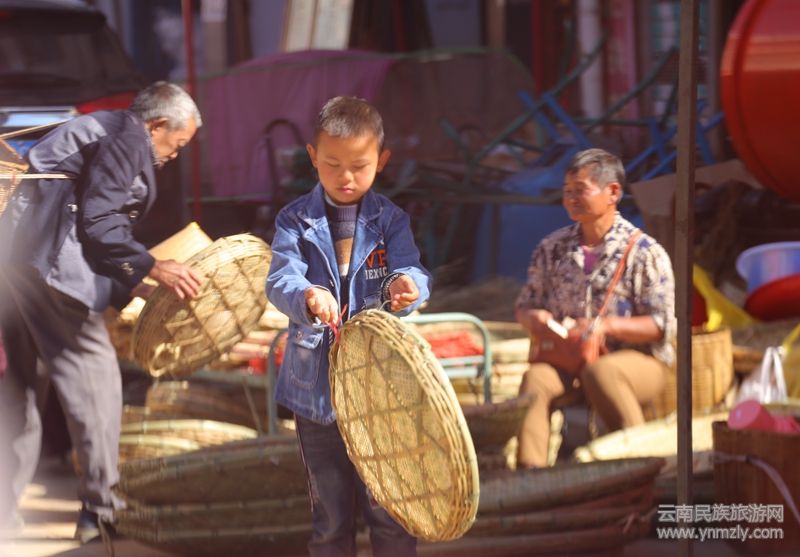云南民族旅游網(wǎng)訊(段曉波 張?zhí)炖恚?,充滿(mǎn)了濃郁的鄉(xiāng)土氣息,也是街道買(mǎi)賣(mài)的一道風(fēng)景。街天大早,老篾匠們就叮兒當(dāng)兒把各種篾編挑到街里;有竹籃,有簸箕,有各種生產(chǎn)中適用的小農(nóng)具,沿著街口擺起來(lái),一件疊一件,壘砌得如戰(zhàn)壕一般,開(kāi)始了一天的生意。老篾匠是姚關(guān)這條街做買(mǎi)賣(mài)中最老的人,三五兩個(gè),蹲在篾編后面,看著魚(yú)貫而入的街人,不慌不忙,支起了“懶鉤”,五天一街,風(fēng)雨不改。