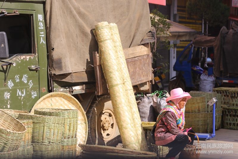 現(xiàn)在買(mǎi)篾編的地方屬于街頭,是姚關(guān)街交通最方便的地方,也許是一種情懷,鼓勵(lì)傳統(tǒng)手工藝的傳承與發(fā)展,也許是一種人道主義,考慮到從事這份瀕臨職業(yè)老匠人年齡的問(wèn)題,伴隨新集鎮(zhèn)的開(kāi)發(fā)就一直在這里,將近20年了。曾經(jīng)這些篾編屬于農(nóng)耕社會(huì)的“緊俏”物資,老匠人很吃香,是他們奠定了姚關(guān)街的繁榮,屬于三朝元老。印象中,“賣(mài)籃子處”,在姚關(guān)程家巷,一個(gè)青石板鋪砌狹長(zhǎng)的小道,平緩的坡徐徐而上,每逢街天,篾編街熱鬧非凡,密密匝匝的擺滿(mǎn)了各種當(dāng)?shù)氐氖止に?,籃子、簸箕、糞箕、篾鼓凳、攤笆、草席、草鞋、犁頭、鋤把等,應(yīng)有盡有,攬盡了老百姓平時(shí)農(nóng)業(yè)生產(chǎn)當(dāng)中所需的東西,是包羅萬(wàn)象的“農(nóng)民街”,一直延伸到鄉(xiāng)政府門(mén)口。人流熙熙攘攘,有匠人自己賣(mài)的,也有生意人倒過(guò)來(lái)賣(mài)的,買(mǎi)賣(mài)之間在相互砍價(jià),磨盡口舌,只為彼此三分盈利,念著便宜是砍下來(lái)的生意經(jīng);而匠人們有嚴(yán)格的職業(yè)操守,“行有行規(guī)”一般都遵從“一分錢(qián)一分貨”的原則,價(jià)格不合適不買(mǎi)賣(mài),生意不成人情在。姚關(guān)街是南片集市的交易中心,匯集了來(lái)自四面八方其它鄉(xiāng)鎮(zhèn)的買(mǎi)賣(mài)人,各自在這里“割據(jù)”到了“地盤(pán)”,王家巷是布朗人在這里賣(mài)山貨,汪家倉(cāng)庫(kù)這邊是施甸下截壩子來(lái)賣(mài)菜,十字街是賣(mài)糧油食品和一些干貨特產(chǎn),老郵政所巷口蔣家寨的水庫(kù)魚(yú)和山邑小魚(yú)在爭(zhēng)相輝映;一到街天,趕轉(zhuǎn)街的流動(dòng)商販攤位順著青石板街道成“雙龍出海”的陣勢(shì),外省人的補(bǔ)鞋機(jī)在搖得吱吱響,兩角錢(qián)一碗的豆粉鋪爆滿(mǎn),劃了一托盤(pán)兒又一托盤(pán)兒,湯圓店里熱氣騰騰,圍著那些遠(yuǎn)道而來(lái)的趕街人,發(fā)廊里那些愛(ài)美的少男少女在排著隊(duì)… …接踵而至的街人背著籃子,挨肩擦背、足跡相疊,潮水一般… …“天還不亮就出發(fā),趕到太陽(yáng)落山才回家”的盛況譜寫(xiě)了姚關(guān)街一度的繁華。