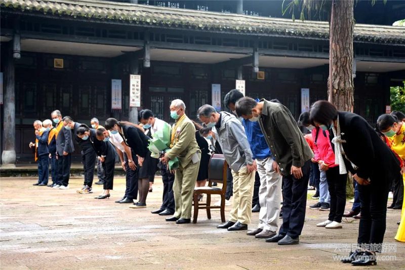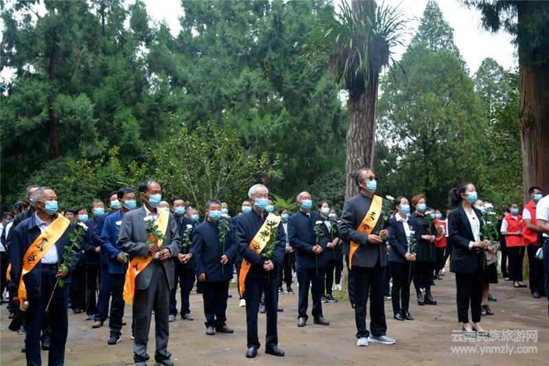 早上9:00,莊重的《慰魂曲》奏響,騰沖市文化和旅游局負(fù)責(zé)人和抗戰(zhàn)老兵代表盧彩文向抗日英烈敬獻(xiàn)花圈,參加拜謁的全體人員依次向抗日陣亡將士敬獻(xiàn)鮮菊,并一同向抗日陣亡將士鞠躬致敬,表達(dá)對(duì)英烈們由衷的敬意和深切的緬懷。