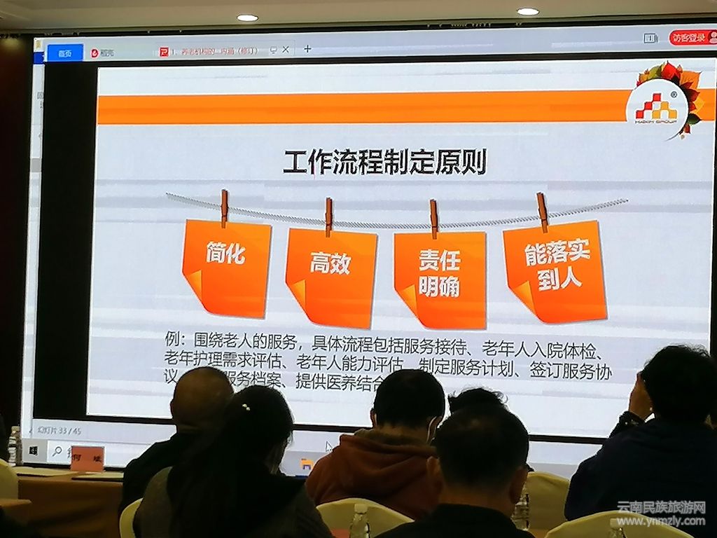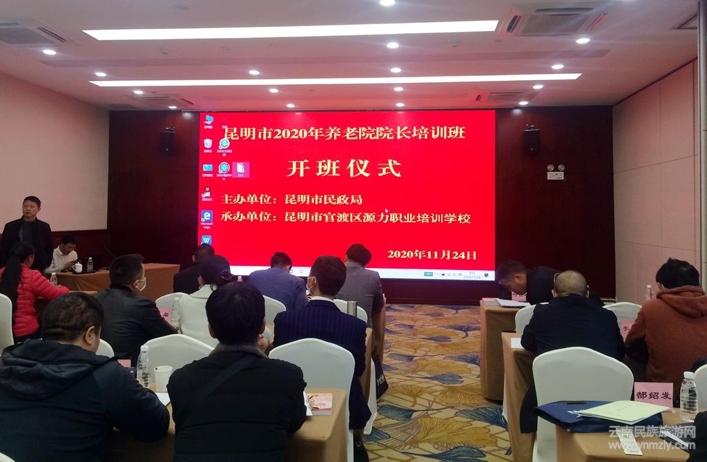 云南民族旅游網(wǎng)訊(記者 吳敏昆)11月24日—25日,由昆明市民政局主辦,昆明市官渡區(qū)源力職業(yè)培訓(xùn)學(xué)校承辦的,昆明市第2020年一批養(yǎng)老院院長(zhǎng)培訓(xùn)班在云南省老干部活動(dòng)中心呈貢銀園開班。昆明市民政局副局長(zhǎng)馬承斌進(jìn)行開班動(dòng)員,邀請(qǐng)了云南省民政廳養(yǎng)老服務(wù)處副處長(zhǎng)李智介紹了云南省養(yǎng)老整體規(guī)劃與政策支持。本次培訓(xùn)分為線上課程與線下課程兩部分,在培訓(xùn)課上來自全市下轄119家養(yǎng)老院院長(zhǎng)參加培訓(xùn)。