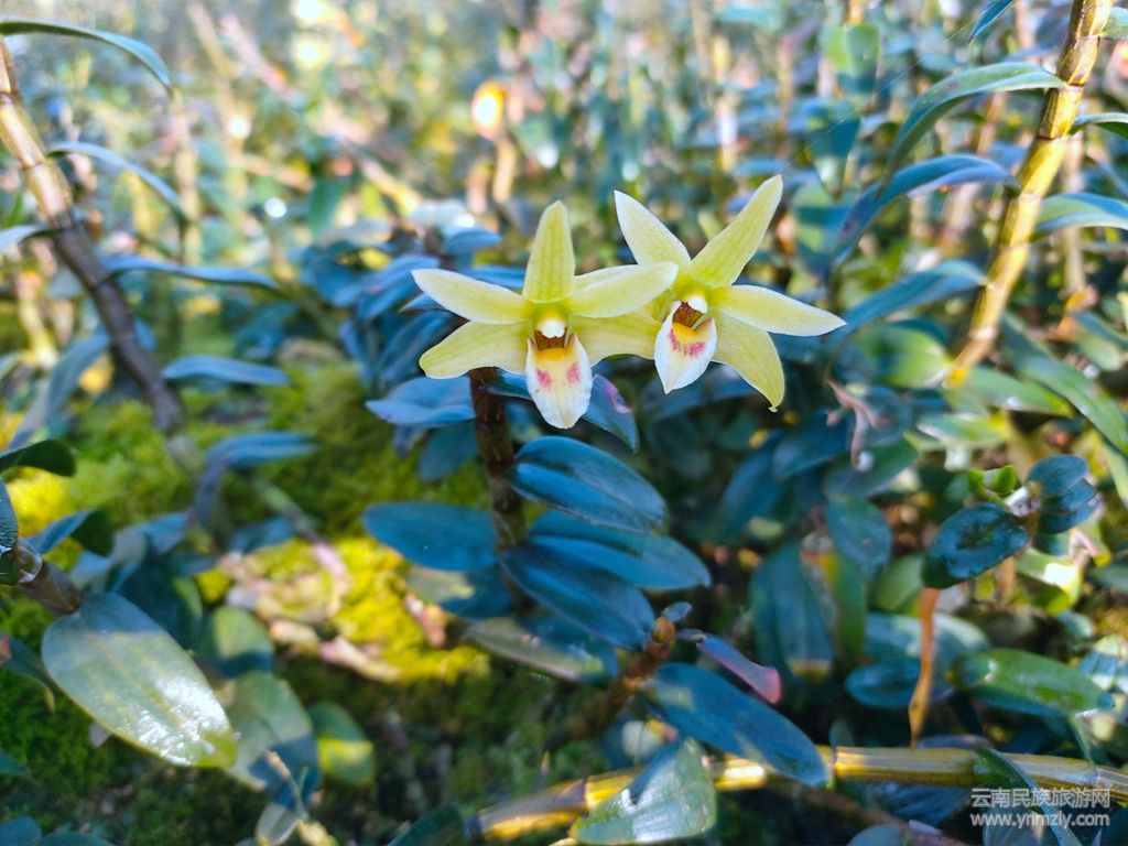 入冬時節(jié),走進龍江鐵皮石斛種植基地,沿田間步道上行,目所及處,成片搭建好的棚子里面只見鐵皮石斛長得郁郁蔥蔥、長勢茂盛,搭建好的有機土樹皮上“爬”滿了鐵皮石斛,微風拂過,健壯的枝條隨風搖曳,奮力吸取著天地精華。眼下正是鐵皮石斛盛花期,幾乎每棵鐵皮石斛的頂端都盛開著鵝黃色的花朵,形似小蘭花,十分嬌嫩可愛,在光合和營養(yǎng)物質的共同作用下,成片的鐵皮石斛花競相綻放。