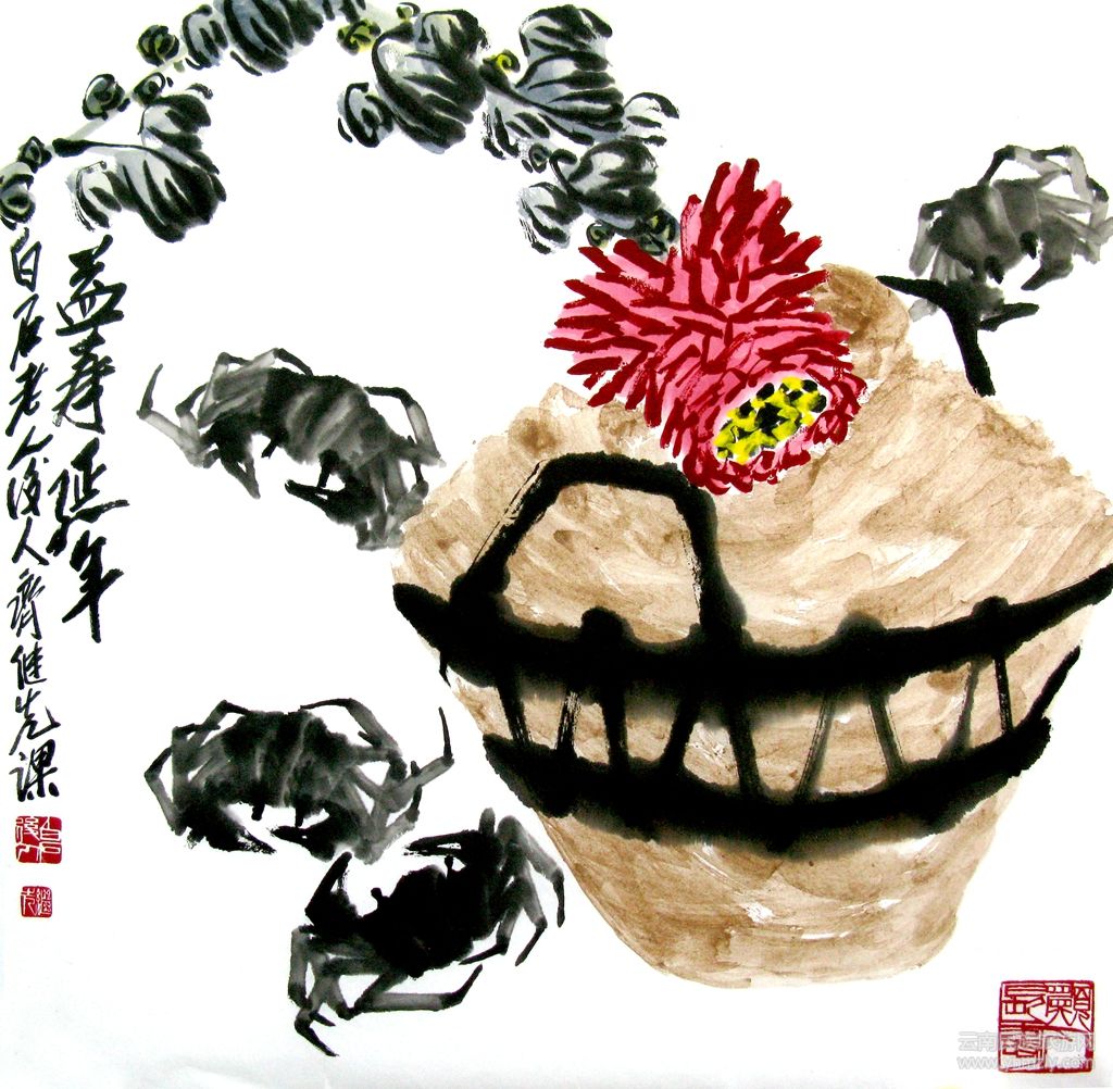 在藝術(shù)傳承與創(chuàng)新之路上,他堅持曾祖白石老人把富有農(nóng)民生活氣息的民間藝術(shù)情趣融入創(chuàng)作的思想,及“似與不似之間”的畫論;并利用白石后人的優(yōu)異條件,認(rèn)真揣摹曾祖各個時期不同花鳥魚蟲、山水及人物畫的表現(xiàn)手法、特點,吃透曾祖的構(gòu)圖、用筆、用墨;然后,孜孜不倦的觀察,孜孜不倦的畫;最終,在傳承中形成了自己的畫風(fēng):山水畫構(gòu)圖不落俗套,隨意生發(fā),富有真山真水的靈性;花鳥畫筆墨渾厚圓潤,色彩濃烈,色調(diào)明快,手法簡練,意境淳厚樸實,作品中的魚、蝦、蟲、蟹妙趣橫生,活靈活現(xiàn),傳承了‘齊派’藝術(shù)的風(fēng)采。
