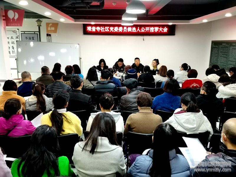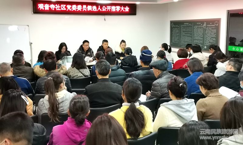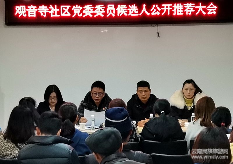 云南民族旅游網(wǎng)訊(記者尹紹平)觀音寺社區(qū)黨支部委員會是2016年3月19日經(jīng)全體黨員大會選舉產(chǎn)生的,任期屆滿。根據(jù)《中國共產(chǎn)黨章程》《中國共產(chǎn)黨支部工作條例(試行)》《中國共產(chǎn)黨農(nóng)村基層組織工作條例》《中國共產(chǎn)黨基層組織選舉工作條例》等黨內(nèi)規(guī)章及中共五華區(qū)委辦公室、五華區(qū)人民政府辦公室《關(guān)于印發(fā)<五華區(qū)2021年社區(qū)“兩委”換屆工作實施方案>》精神,12月6日,在社區(qū)召開全體黨員大會,就觀音寺社區(qū)黨委委員候選人公開推薦。為選舉產(chǎn)生新一屆中國共產(chǎn)黨觀音寺社區(qū)委員會作準(zhǔn)備。