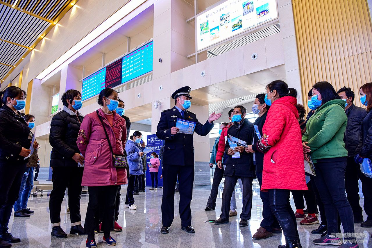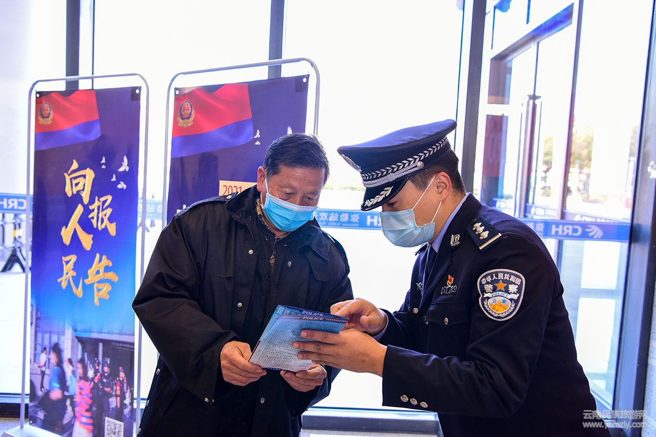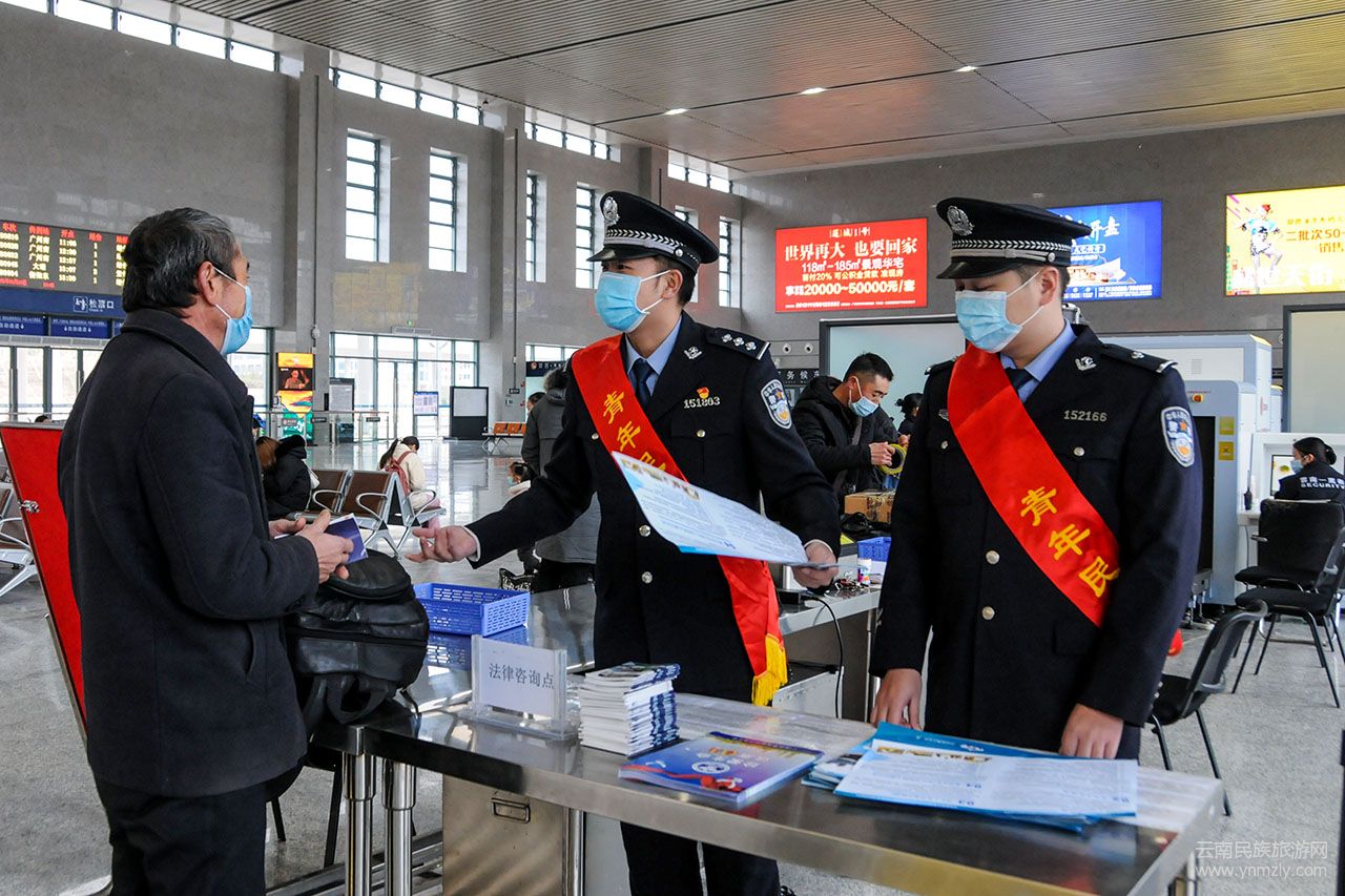 云南民族旅游網(wǎng)訊(徐紅 杜威)1月28日,2021年全國鐵路春運第一天。為避免旅客購票時遭遇不法侵害,造成財產(chǎn)損失,云南開遠鐵路公安處各車站派出所組織開展形式豐富多樣的普法宣傳活動,溫馨提醒旅客購票過程中要注意防騙,平安、順利抵達目的地。