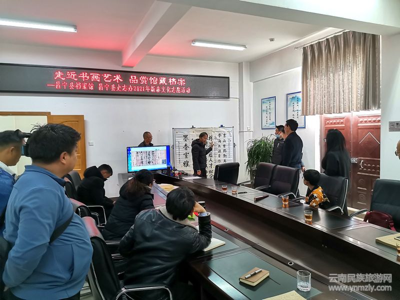 云南民族旅游網(wǎng)訊:2月25日,元宵佳節(jié)即將來臨之際,昌寧縣檔案館聯(lián)合縣史志辦舉辦“走近書畫藝術 品賞館藏檔案”為主題的2021年新春館藏書畫品賞交流會,讓館藏檔案“活起來”,弘揚優(yōu)秀傳統(tǒng)文化。