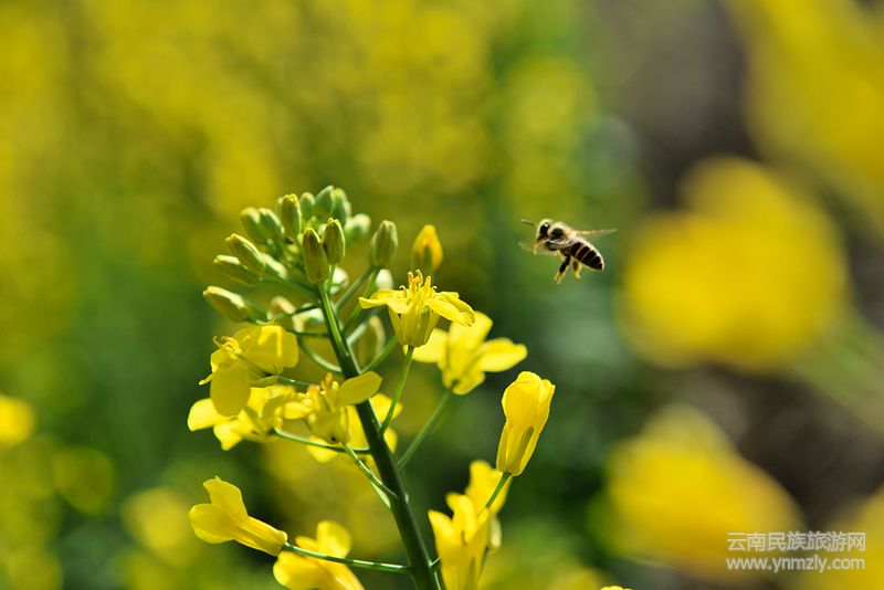 從春節(jié)前開始,昌寧油菜花從山地的小油菜、到田里的白油菜、再到灰油菜漸次開放,這抹金黃以“農(nóng)村包圍城鎮(zhèn)、山區(qū)包圍壩區(qū)”的方式,從冬天開到春天。春節(jié)過后,右甸河畔的萬畝農(nóng)田里的麥苗已進入拔節(jié)期,油菜花也進入盛開時節(jié),洋芋田里已長出小苗,綠油油麥苗、黃燦軸的油菜花交織成春意盎然的地毯,成為了山水田園城市最美的風景線。采蜜的蜜蜂在油菜花間飛來飛去,用“嗡嗡”的歌聲唱出了春天的快樂。