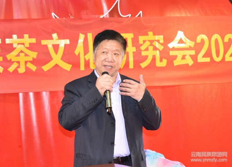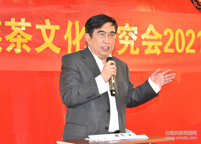 云南省民族茶文化研究會執(zhí)行會長陳正榮先生作報告