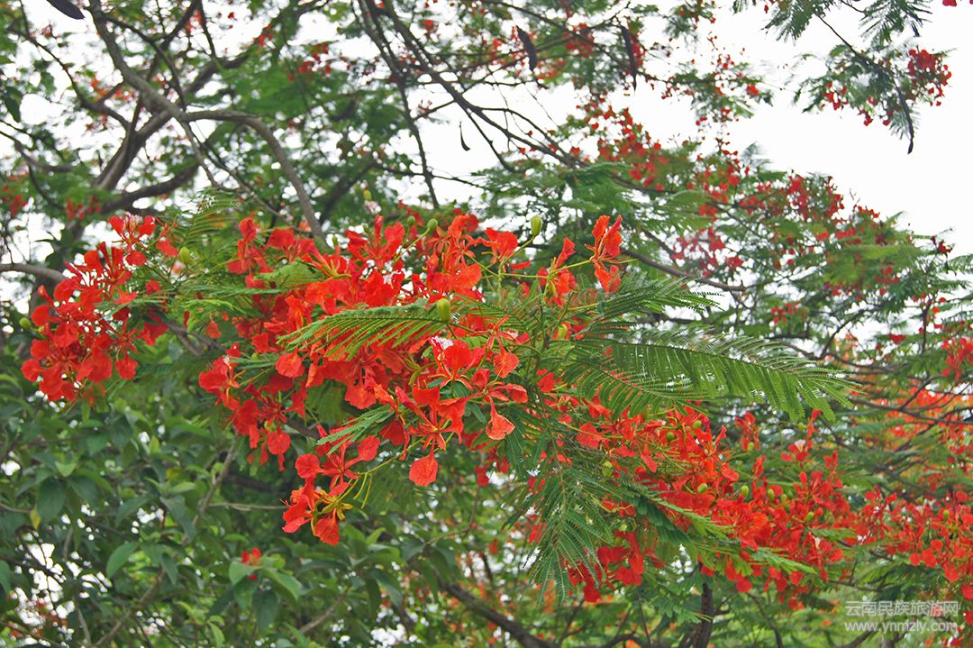 鳳凰花,絕對(duì)是夏天的尤物,更是大自然對(duì)熱區(qū)這片土地的專(zhuān)寵。不論是久居灣甸之人,還是旅途邂逅之客,只要看到這滿(mǎn)樹(shù)紅花與綠葉相映成趣的美景定會(huì)百看不厭,情不自禁駐足停留、飽覽一樹(shù)的妖嬈。