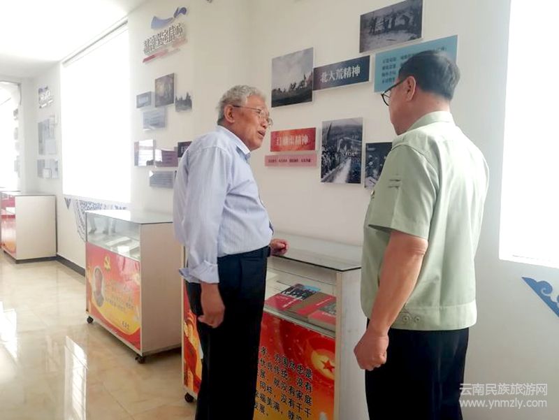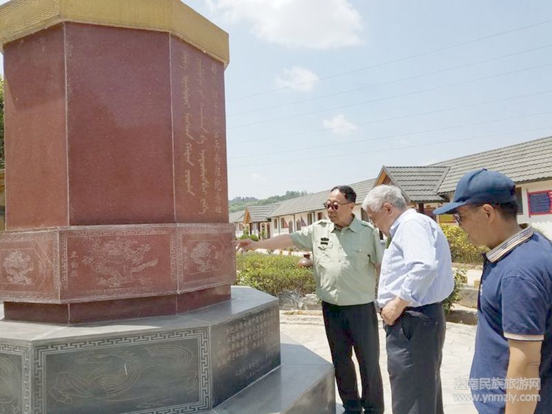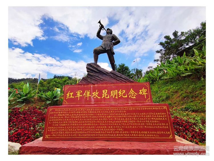 在佯攻昆明紀(jì)念群雕前,關(guān)總和吳寶璋教授討論紅軍長征過云南的歷史故事以及紅軍佯攻昆明的路線: