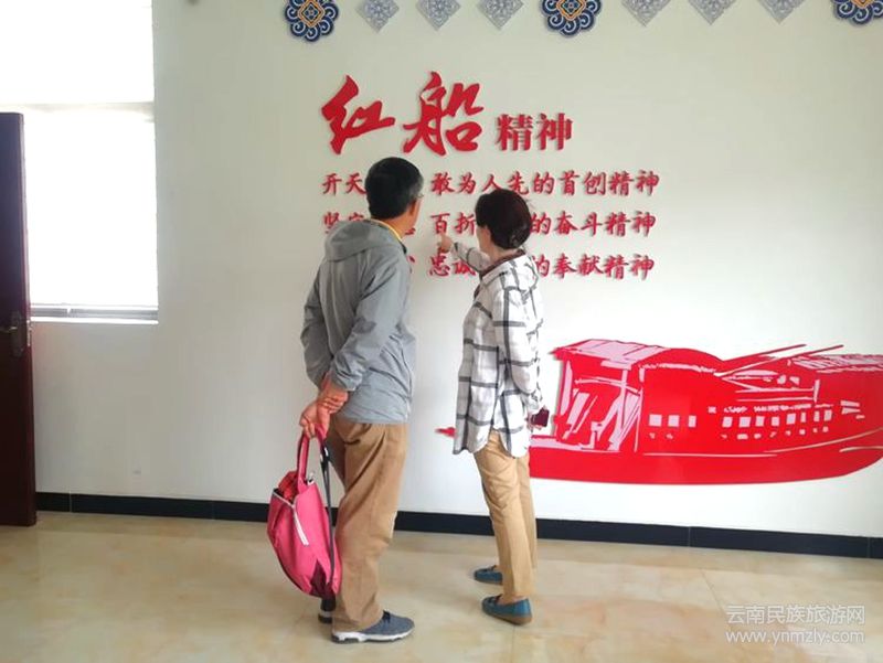 墻上醒目的紅船精神將兩位教授的心帶回到了1921年,13位黨員代表在嘉興南湖的船上圍桌而坐的場景仿佛就浮現(xiàn)在眼前。
