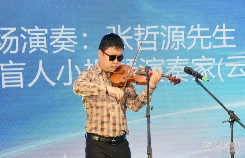 邀請中國首位盲人小提琴演奏家(云南籍)張哲源先生現(xiàn)場演奏《我愛你中國》等曲目