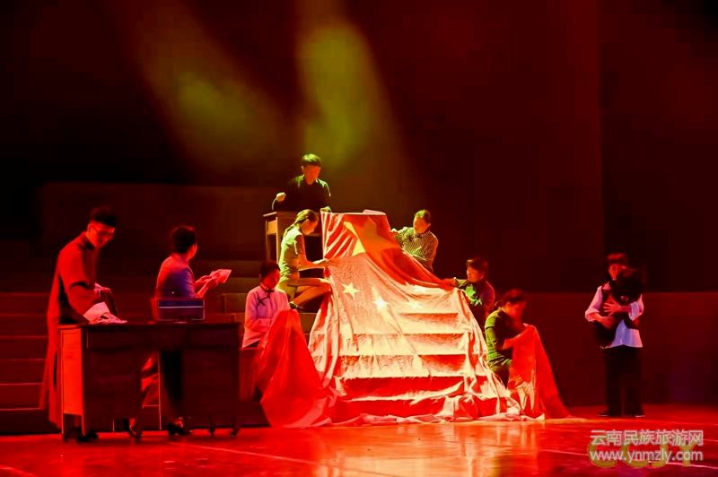 此次首演圓滿結(jié)束后,昆明市春城劇院有限公司總經(jīng)理熊云衛(wèi)在采訪中表示,未來《紅旗飄飄》還將進(jìn)行全省乃至全國范圍內(nèi)的巡演,力爭覆蓋更多的受眾,讓更多的人了解“昆明第一面五星紅旗”的歷史故事。(《紅旗飄飄》劇照 供圖)